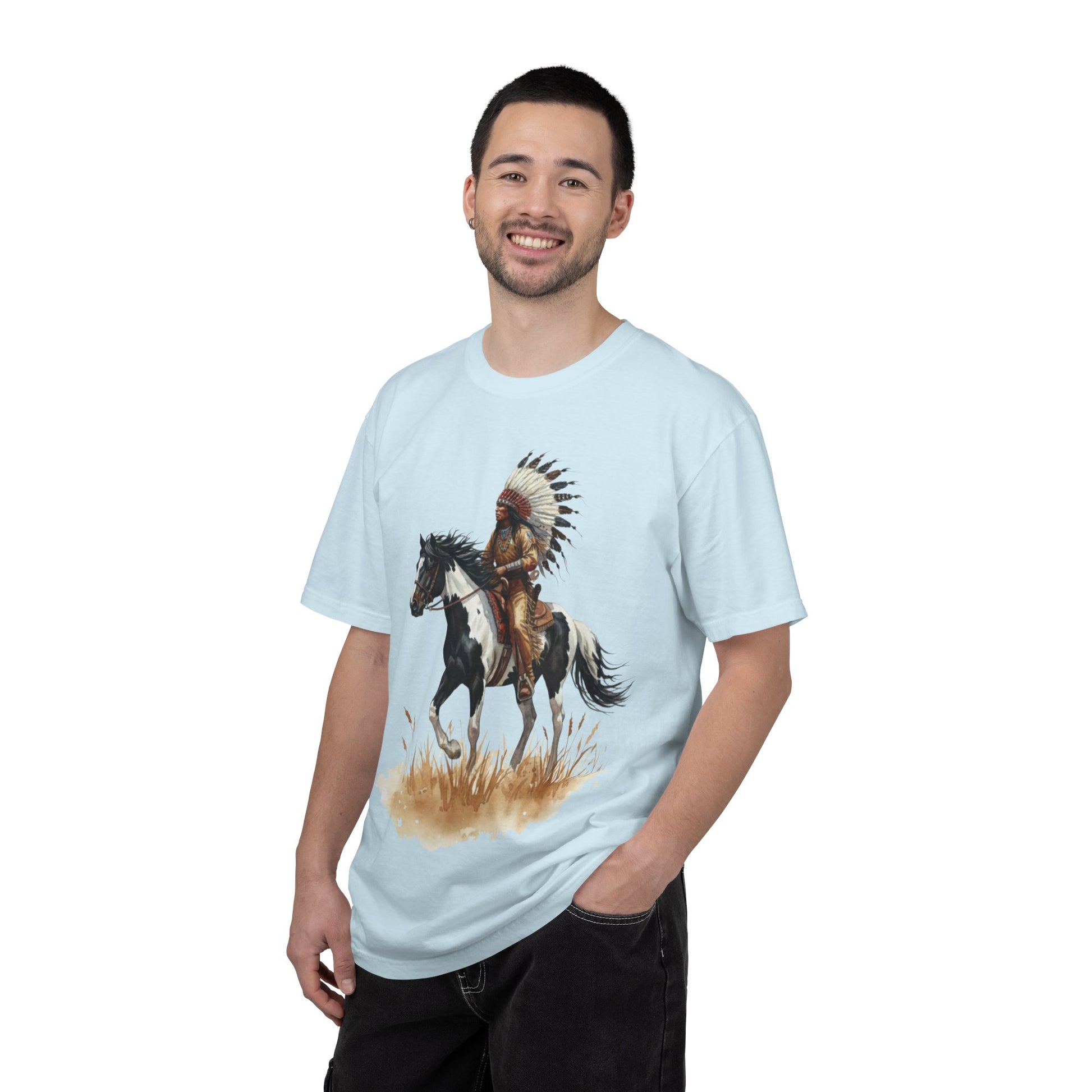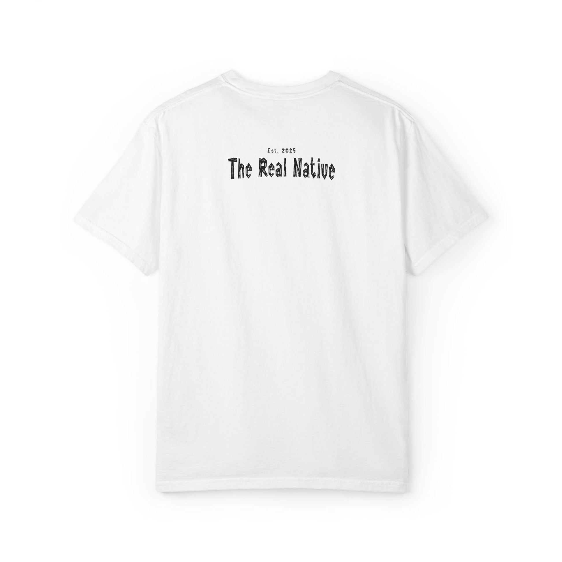 La The Real Native Garment-Dyed Tee combina el proceso premium garment-dyed con diseño inspirado en la cultura nativa. Cada pieza es única gracias al lavado vintage post-construcción.