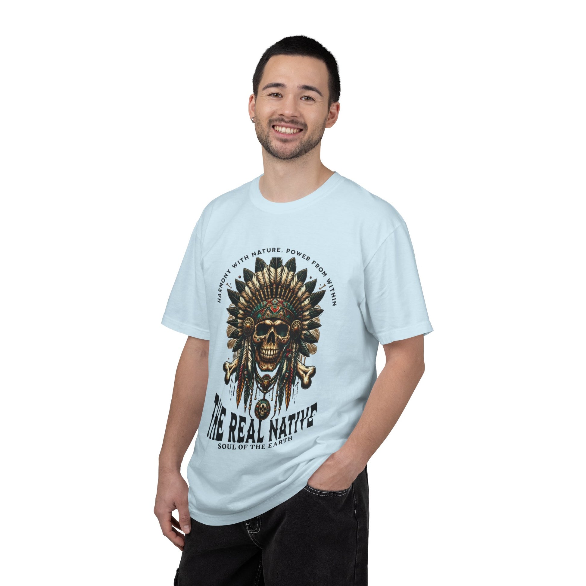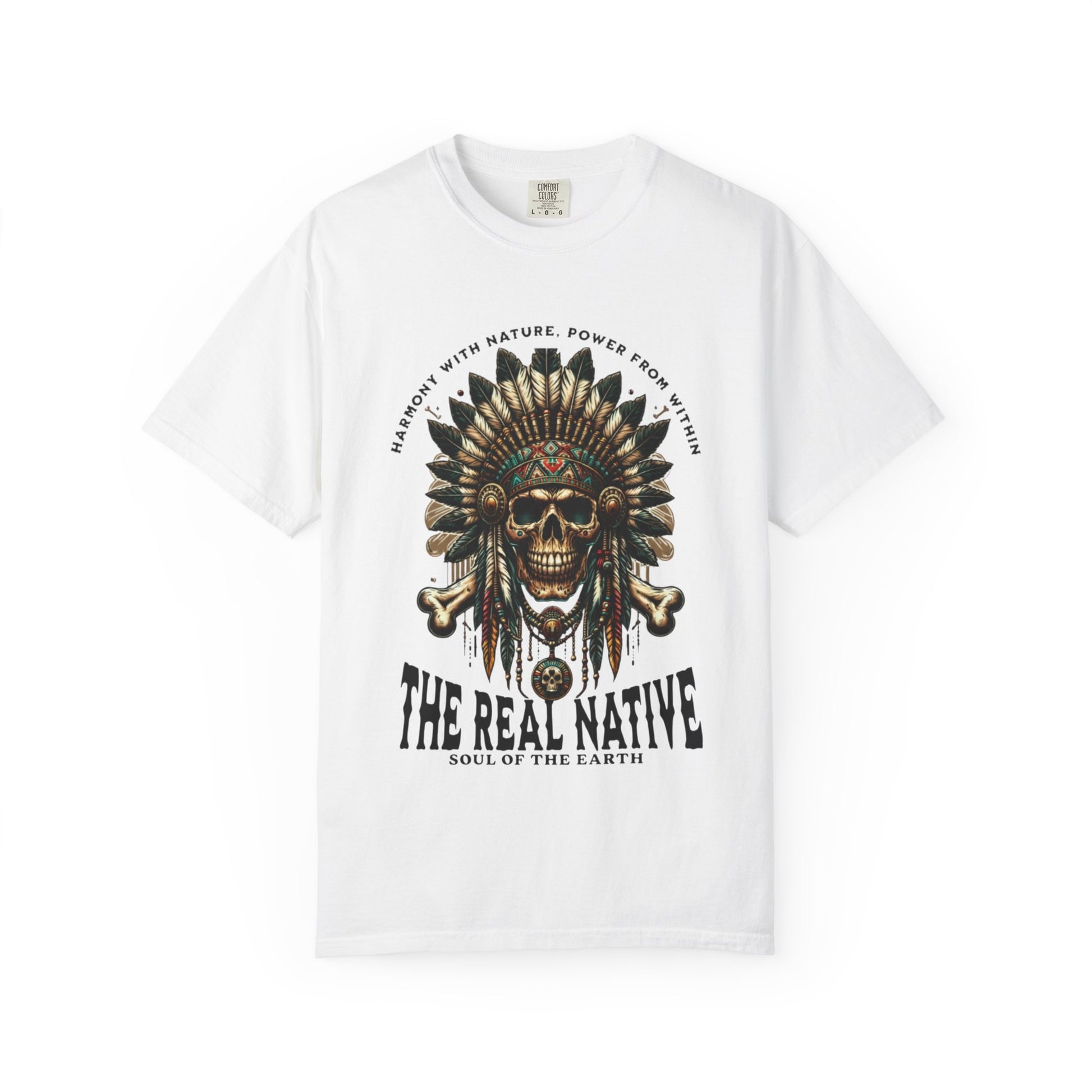 La Skull Headdress Tee fusiona el simbolismo del tocado nativo con arte tribal contemporáneo. Un diseño poderoso que honra la tradición con estilo moderno.